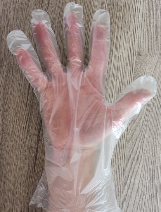 Tyto transparentní mikrotenové rukavice jsou extra pevné (10 my). Jejich velikost L,