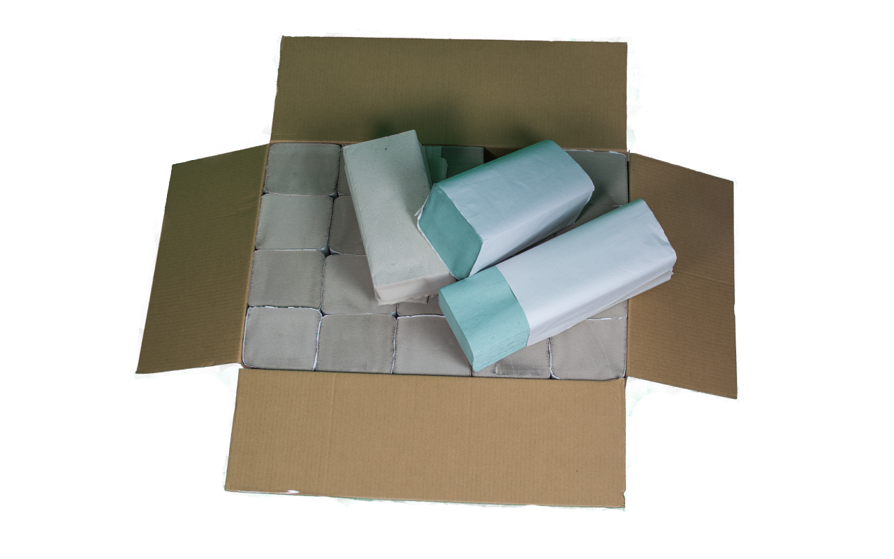 Papírové ručníky zelené jednovrstvé, rozměr cca 25x10,5 cm ve složeném stavu.