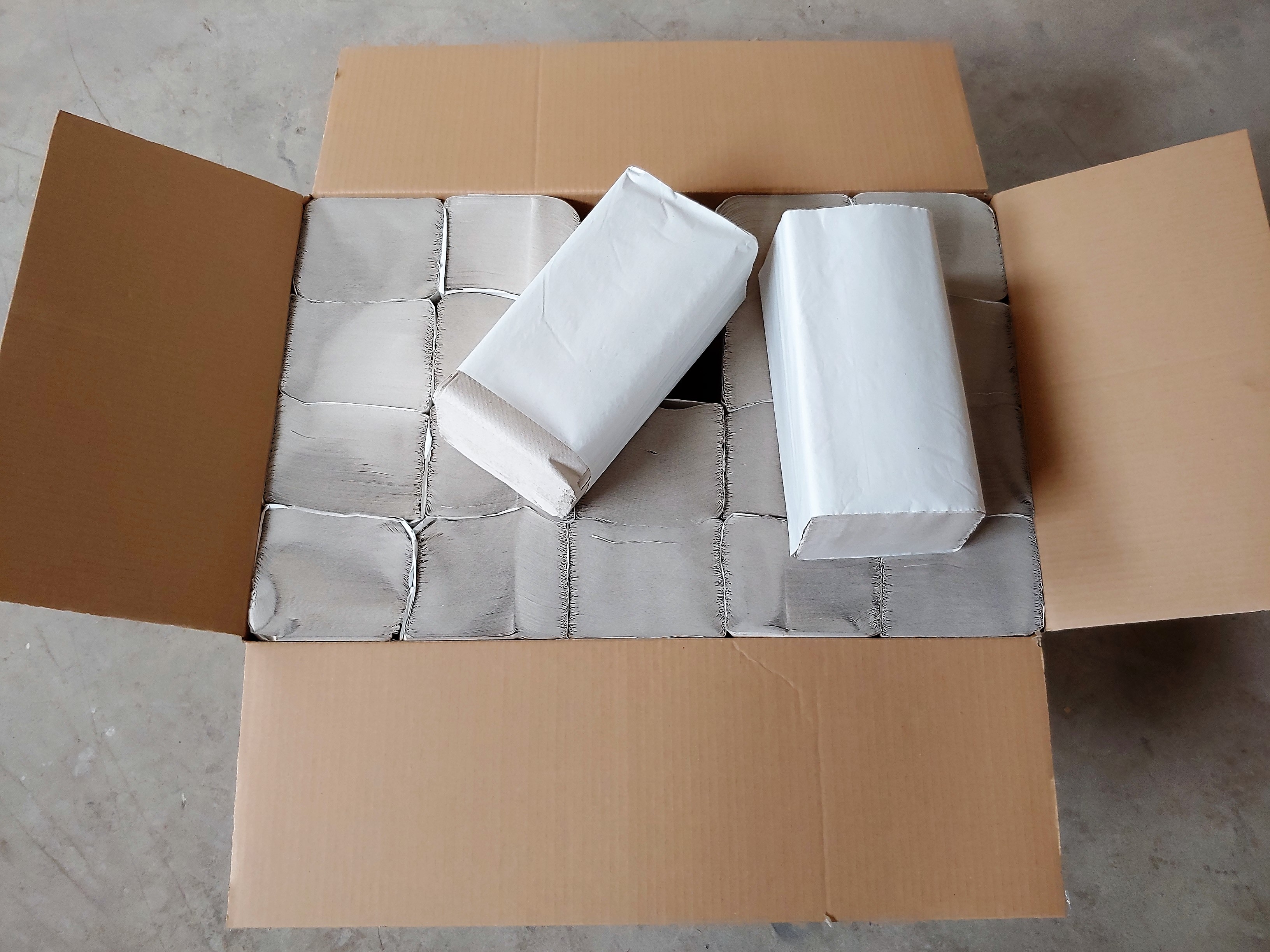 Papírové ručníky šedé jednovrstvé, rozměr cca 25x10,5 cm ve složeném stavu.