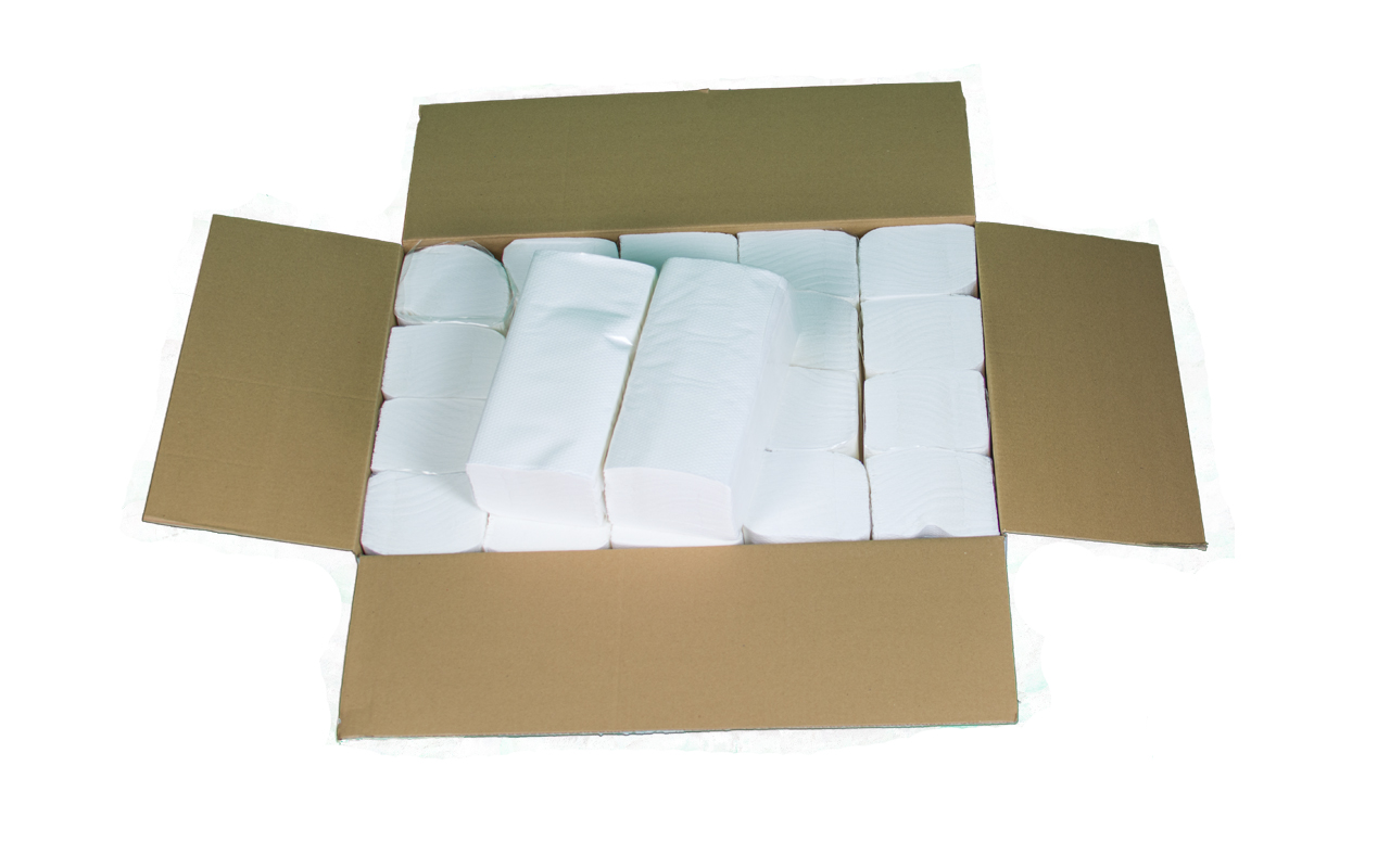 Kvalitní papírové ručníky bílé dvouvrstvé z čisté 100 % buničiny, rozměr 24x21cm (složené 24x11cm).