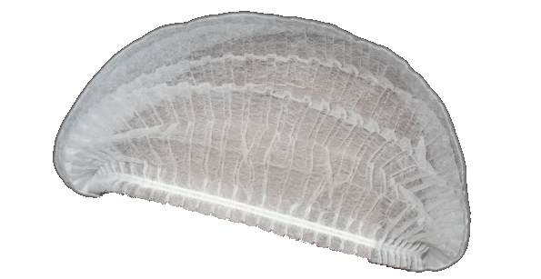 Pokrývka tvaru baretu z netkané textilie s gumičkou, bílé barvy průměr 53 cm.